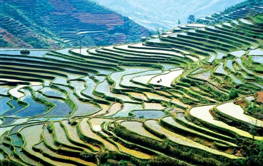 § In the Longji region, equipped with your walking shoes, head to the rice fields of the “dragon's back”. In the mountains, the 60km² of rice terraces, shaped by human beings, offer a magical spectacle.