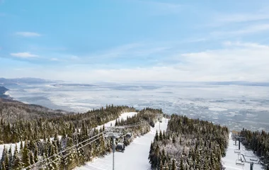 Charlevoix, a gem among the ski resorts near Montreal. Overlooking the mighty St. Lawrence River, Charlevoix offers some of the most breathtaking panoramas you'll find in any ski resort. But it's not just the vistas that draw skiers and snowboarders to this resort; it's also the slopes.