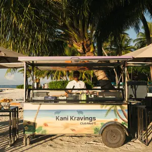The island is beautiful. We loved our stay in the overwater villas and enjoyed watching the sharks and fish cruise past. The food was delicious, and the chefs, waiters and bartenders provided fantastic service. The activities offered catered to those who wanted to try snorkeling, scuba diving, stand-up paddle boarding, kayaking, sailing a catamaran, etc., and there were many day beds strategically placed around the pool and under the palm trees for those who wanted to rest and recharge. We saw sharks, turtles, stingrays, and beautiful fish while snorkeling, and taking part in the catamaran armada to Club Med Finolhu with Shui and his team was a highlight. Special mention to Neo, the yoga and Pilates instructor who provided classes suitable for everyone, and Alexy (Manta), who took me surfing during his lunch break.
